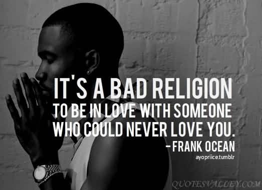Frank Ocean Quote It S A Bad Religion To Be In Love With Someone Who Could Never from quotefancy.com We did not find results for: Check spelling or type a new query. Maybe you would like to learn more about one of these?